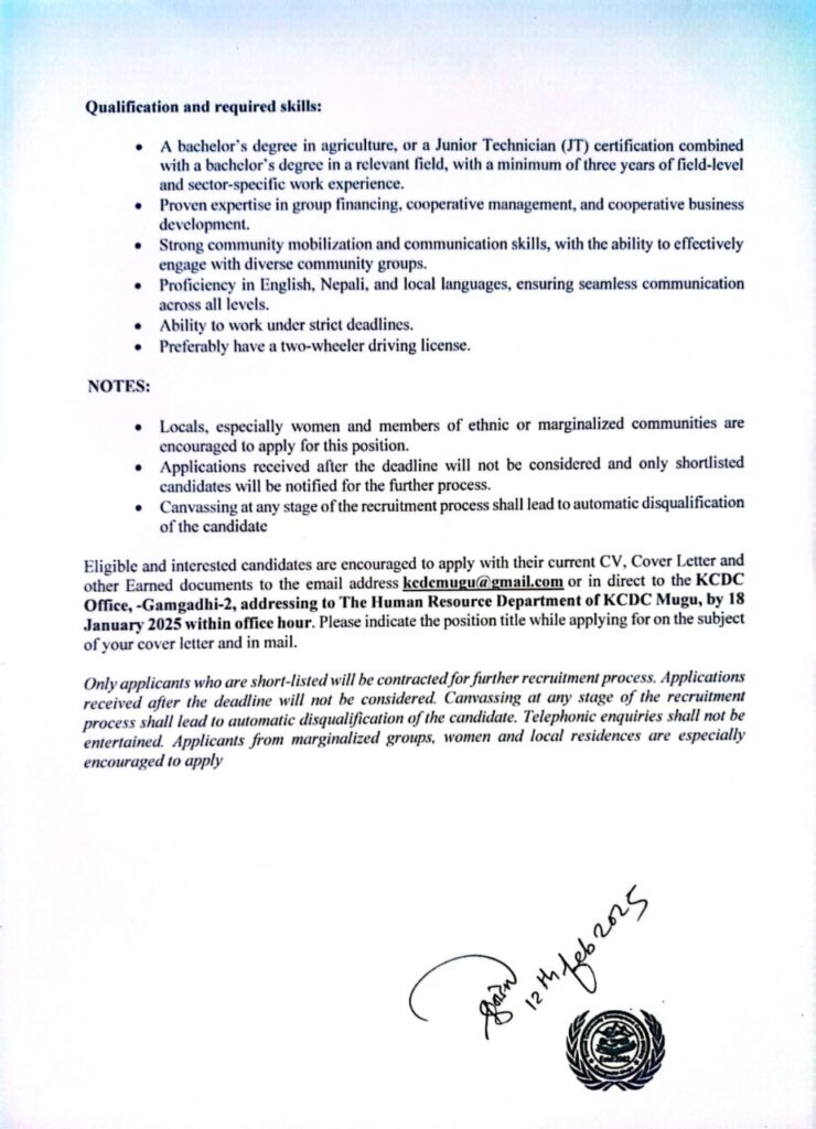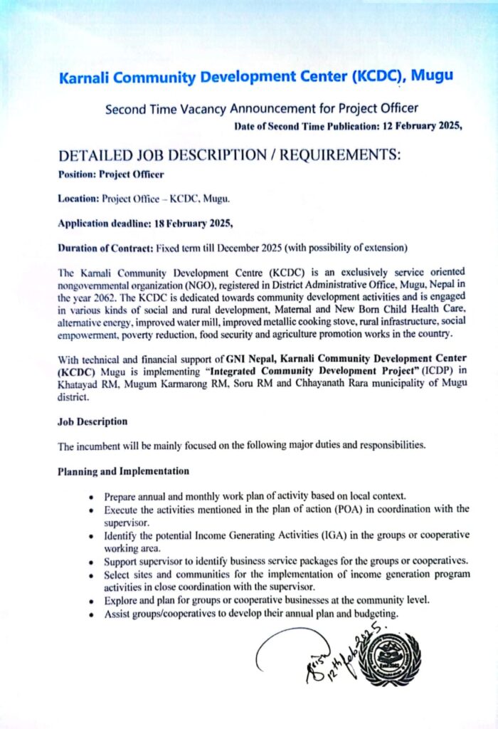Second Time Vacancy Announcement for Project Officer.