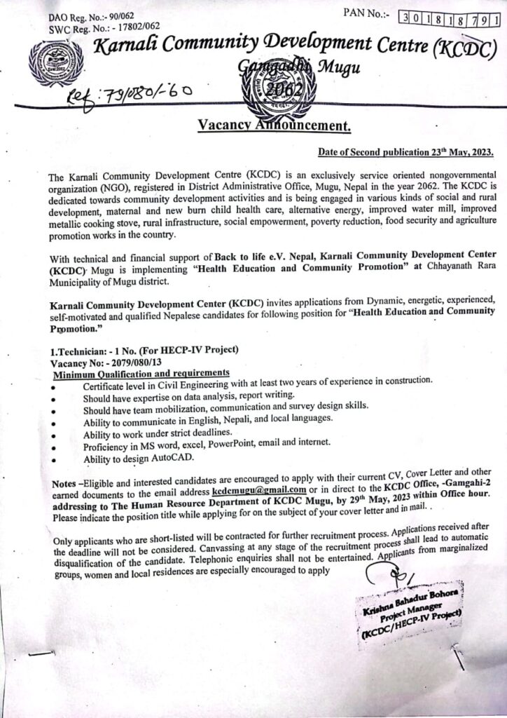 Vacancy Announcement for Cons.Technician ( HECP-IV )